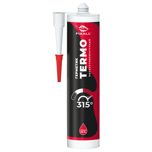 Герметик силиконовый FIXALL высокотемпературный (300°C) красный 300мл. предназначен для внутренних и наружных отделочных работ. Эластичный, легко применяемый однокомпонентный герметик, пригодный для уплотнения различный материалов. Устойчивый к воздействию высокой температуры – до +300°C.