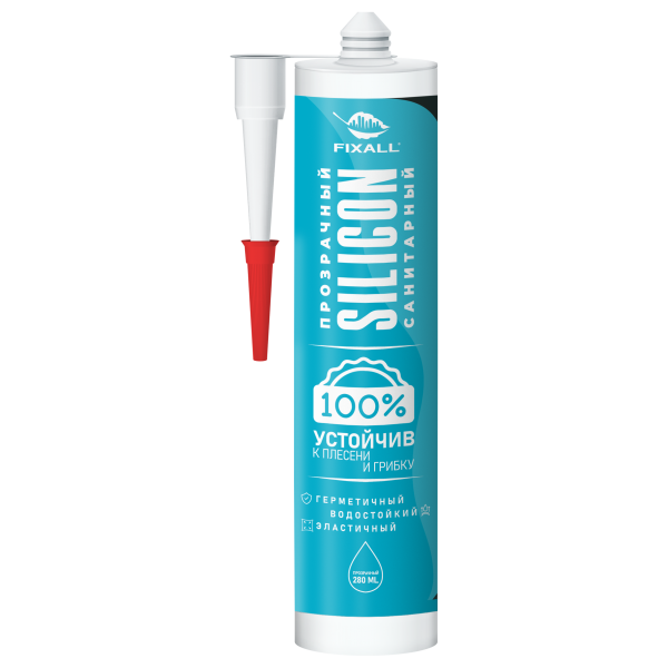 Силиконовый герметик FIXALL прозрачный 280мл предназначен для заделки швов, герметизации и склеивания сантехнического оборудования, витрин и оконных проемов.