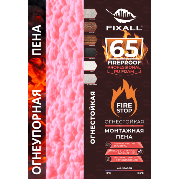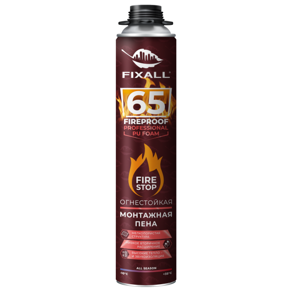 Выбирая профессиональную монтажную пену FIXALL 65 PRO, вы получаете надежный и качественный продукт для выполнения строительных и отделочных работ.