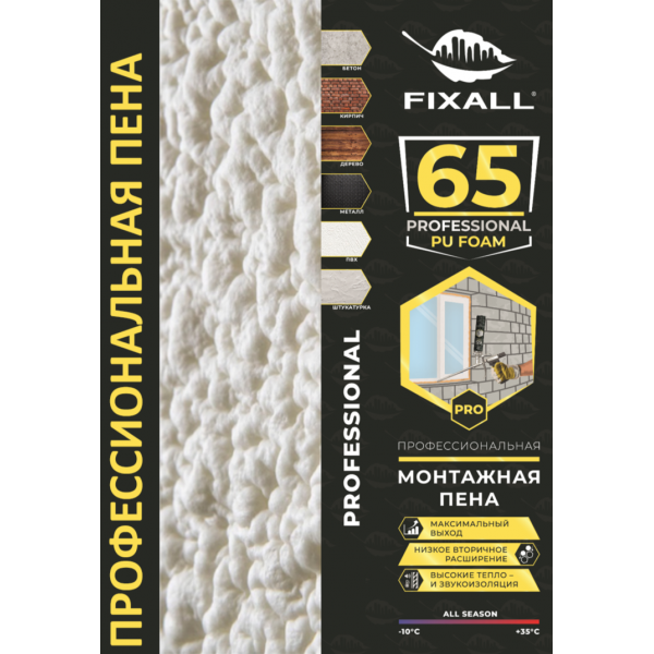 ПЕНА МОНТАЖНАЯ ПРОФЕСCИОНАЛЬНАЯ FIXALL 65 PRO ВСЕСЕЗОННАЯ