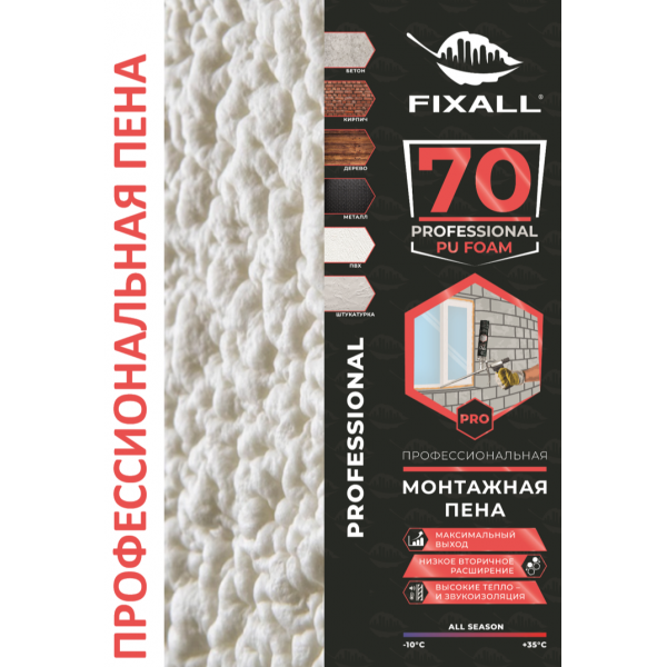 ПЕНА МОНТАЖНАЯ ПРОФЕСCИОНАЛЬНАЯ FIXALL 70 PRO ВСЕСЕЗОННАЯ